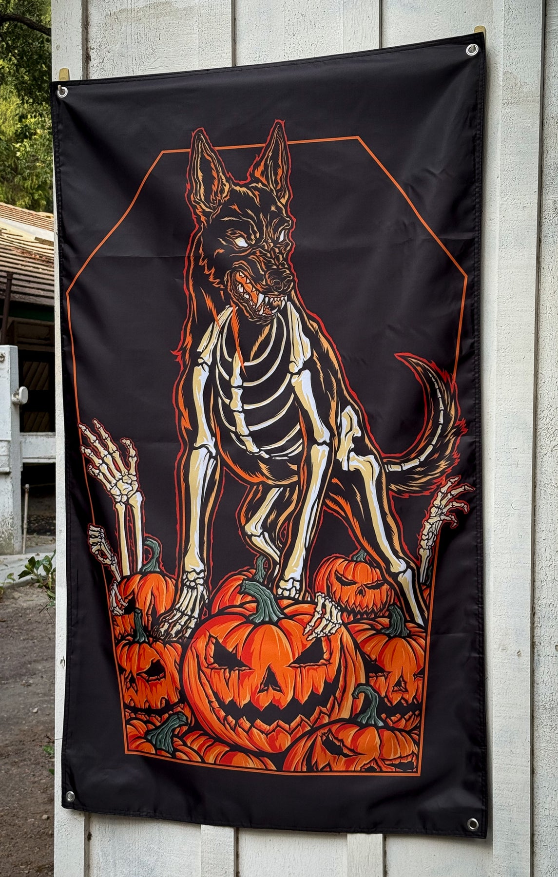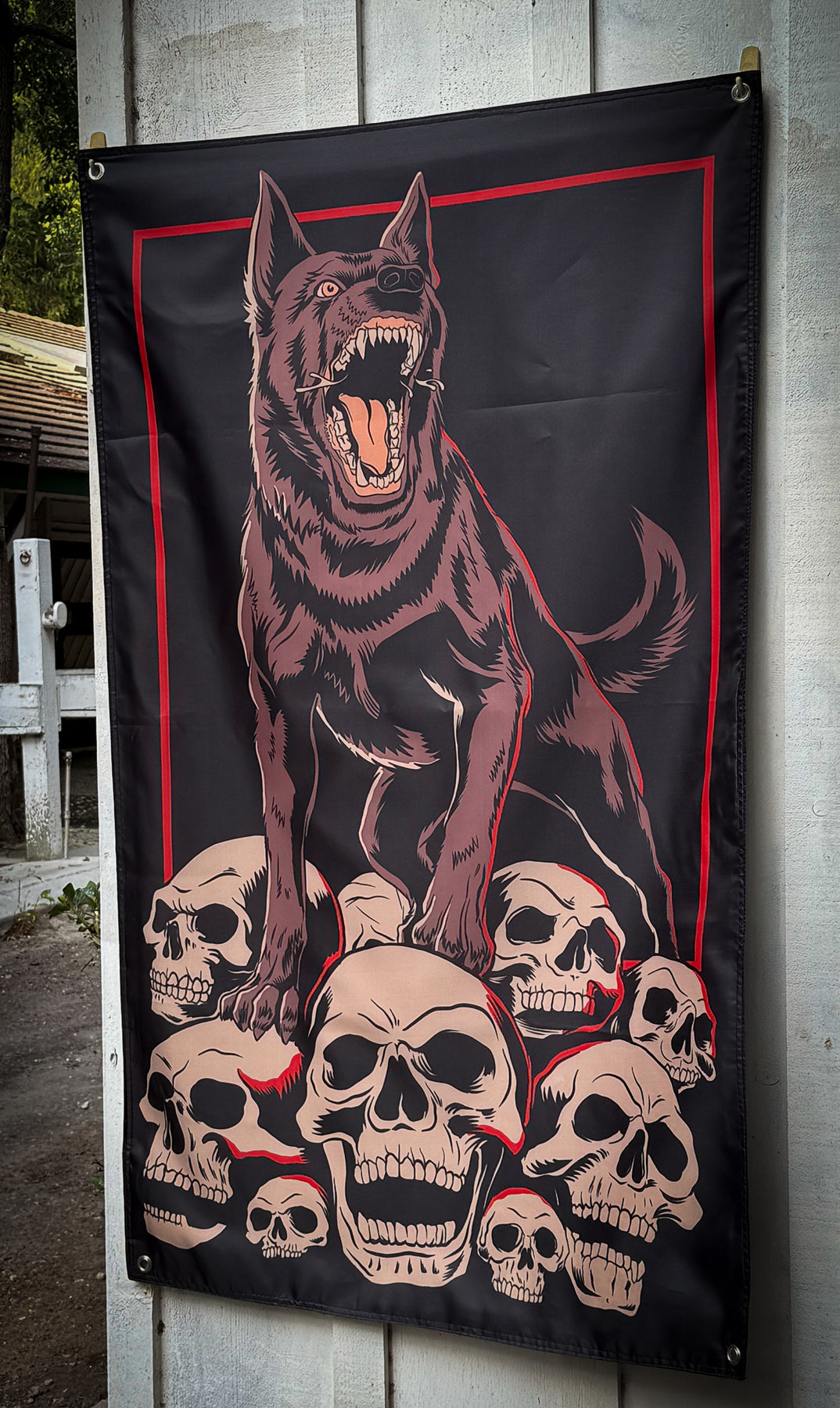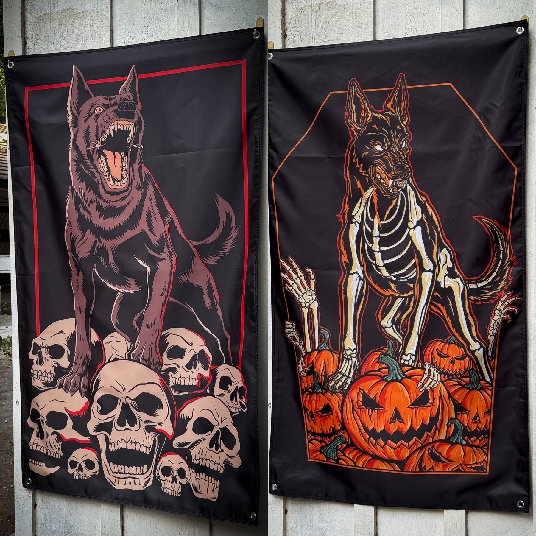 Our "Defcon Canine" Double-Sided flag features two of our favorite designs. "Decoy Dropper V2" design is on one side and "Defcon Harvest" is featured on the opposite side. These flags also make for awesome gifts to the fellow dog handler.