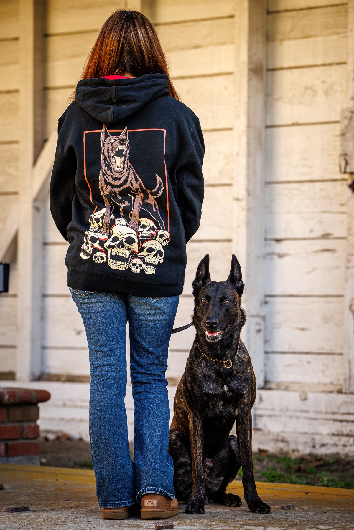 Part of our Friday the 13th Collection...Decoy Dropper is all about celebrating the K9's that give their heart and soul out on the field. Apparel You Can Wear On & Off the Training Field. This hoodie features red drawstrings and a red hoodie liner.