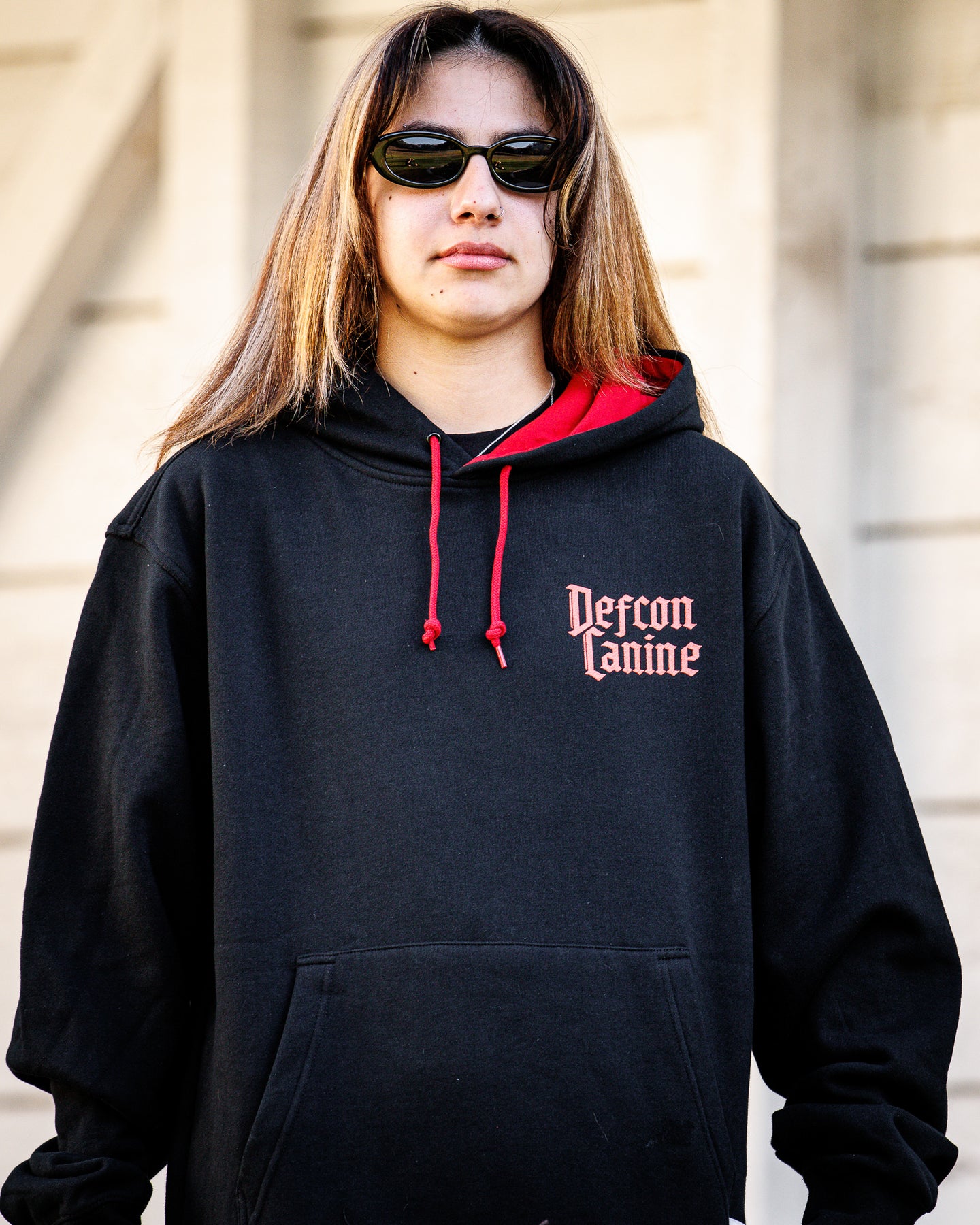 Note: We recommend ordering this Hoodie in your "Defcon-Canine" shirt size.