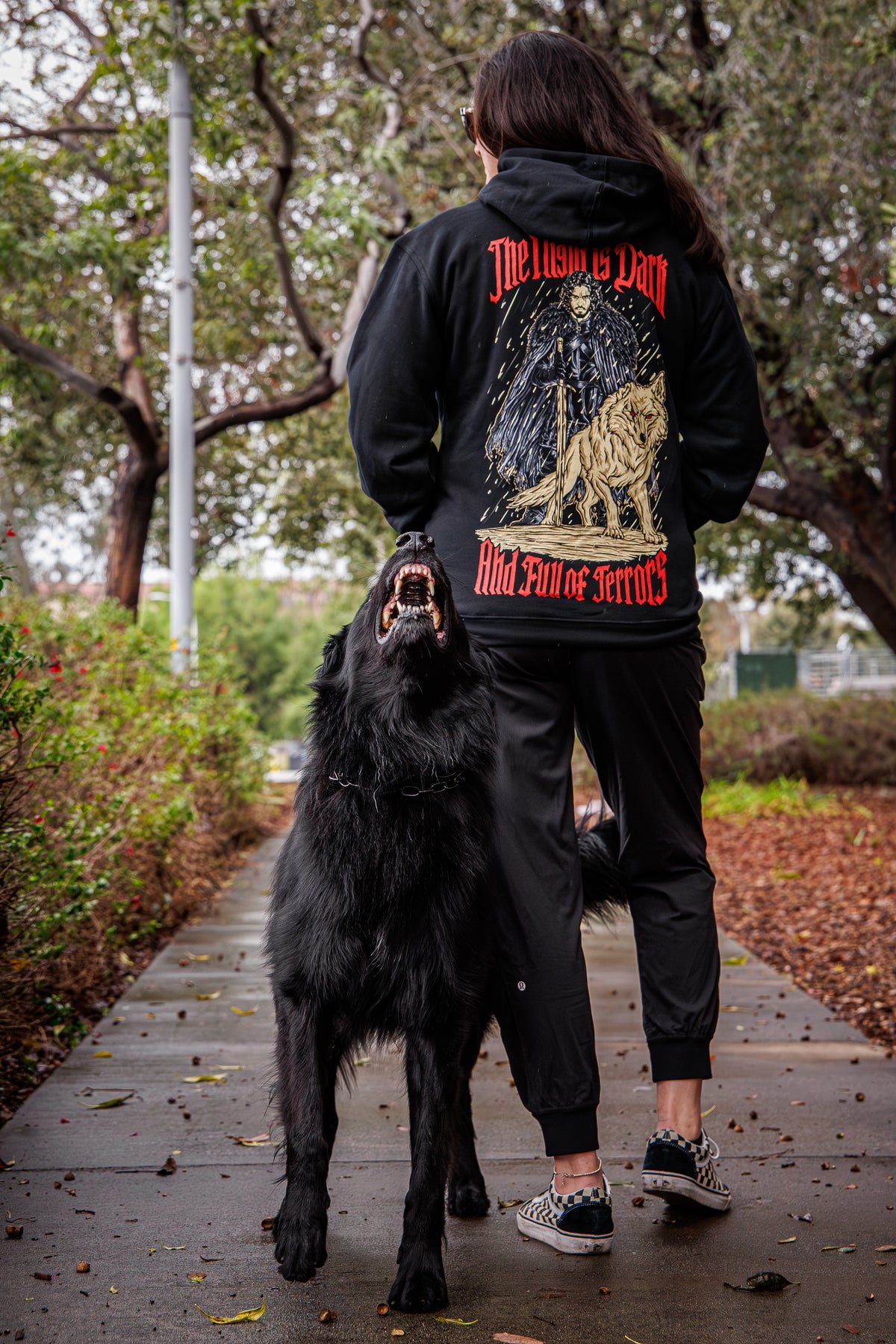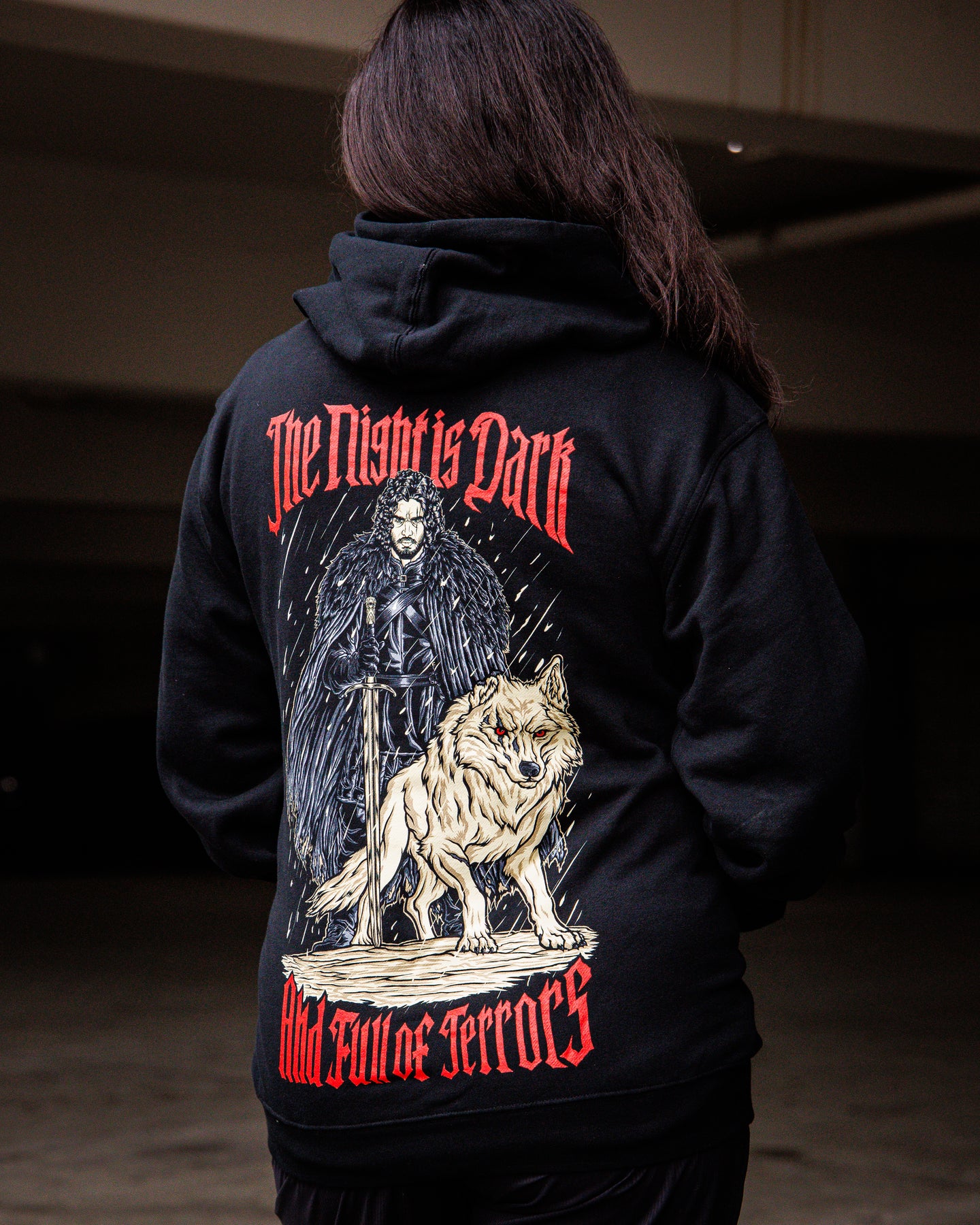 "The Night is Dark and Full of Terrors" - Our tribute design to Jon Snow and his Dire Wolf Ghost. Apparel you can wear on & off the training field. Apparel You Can Wear On & Off the Training Field.