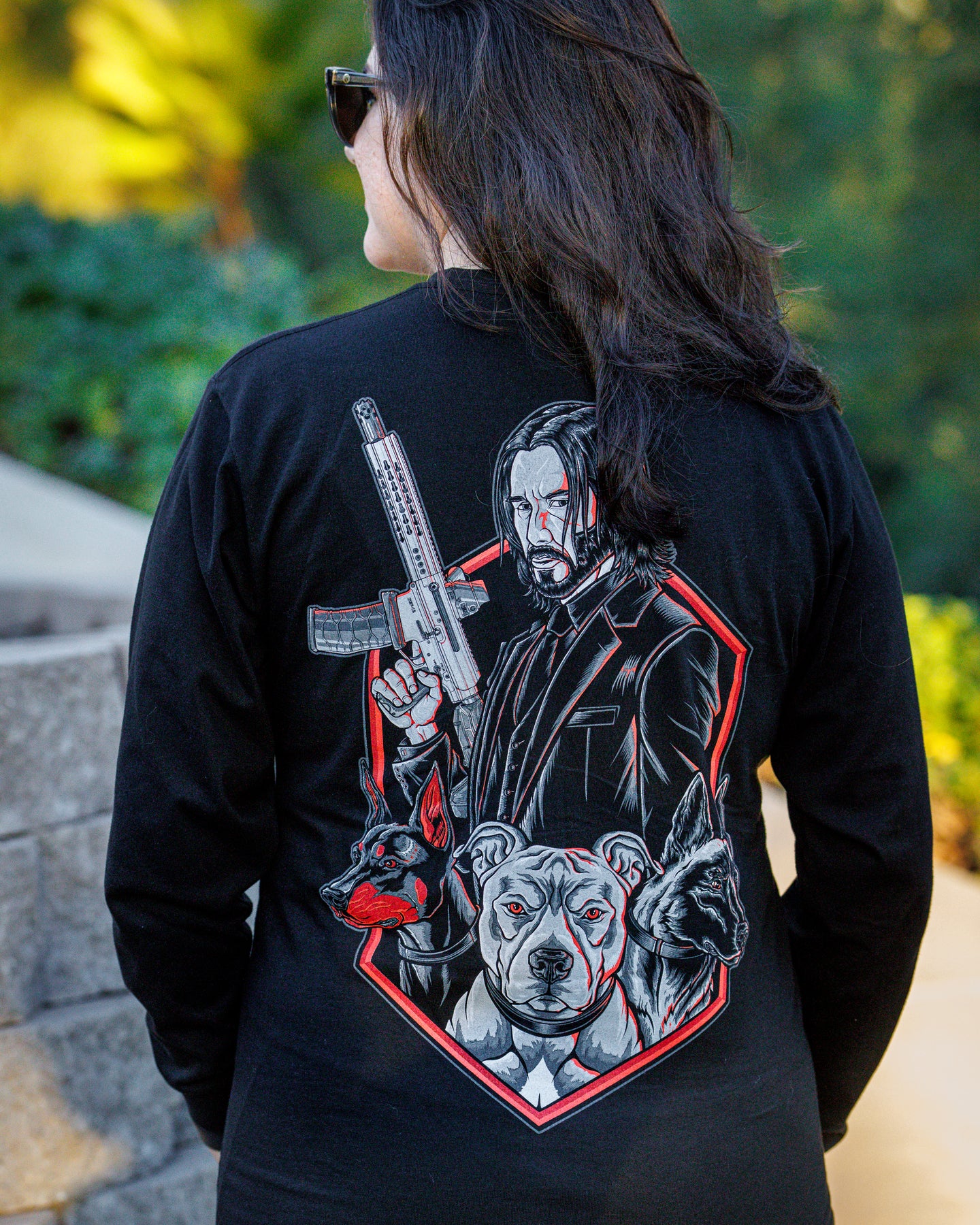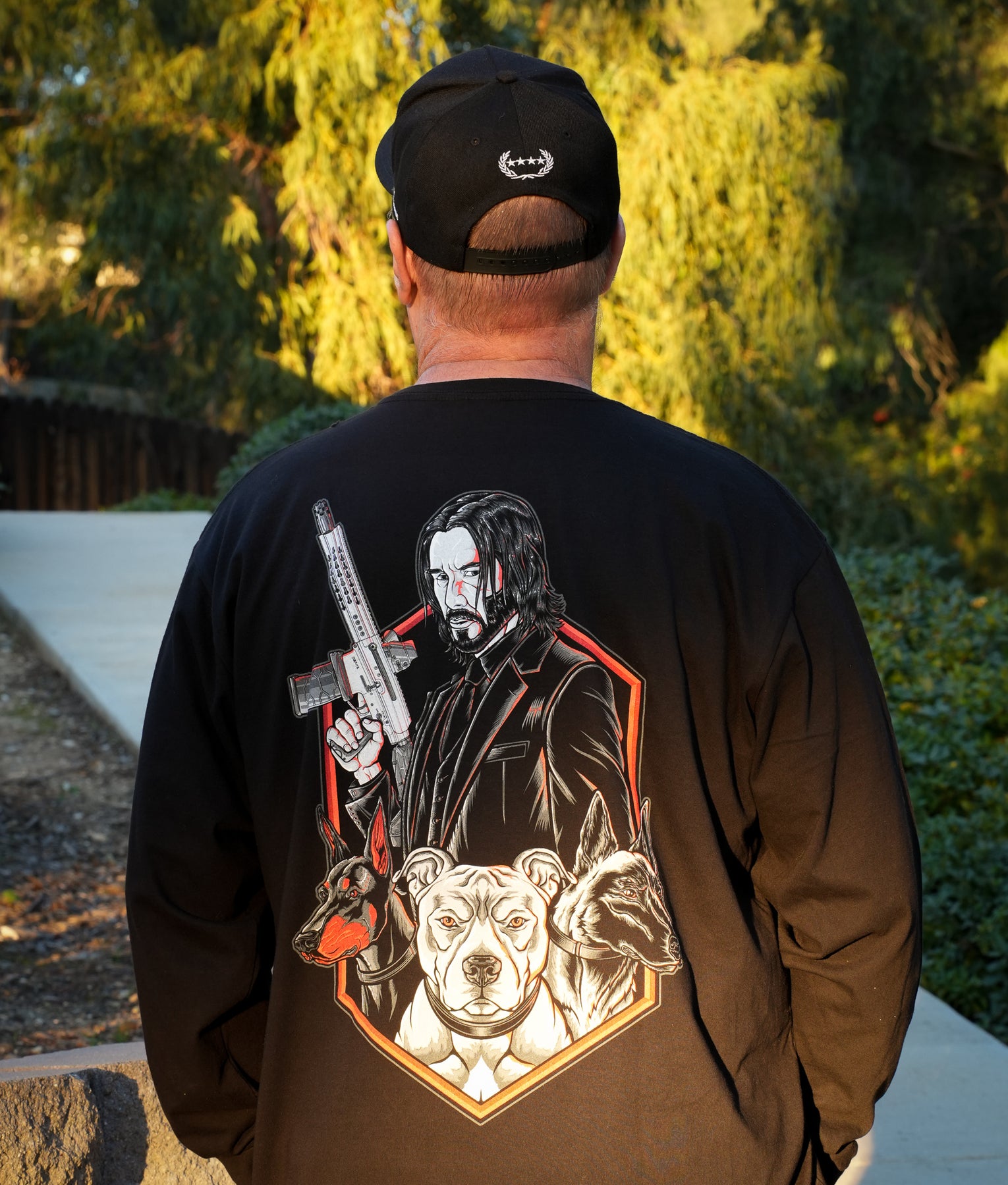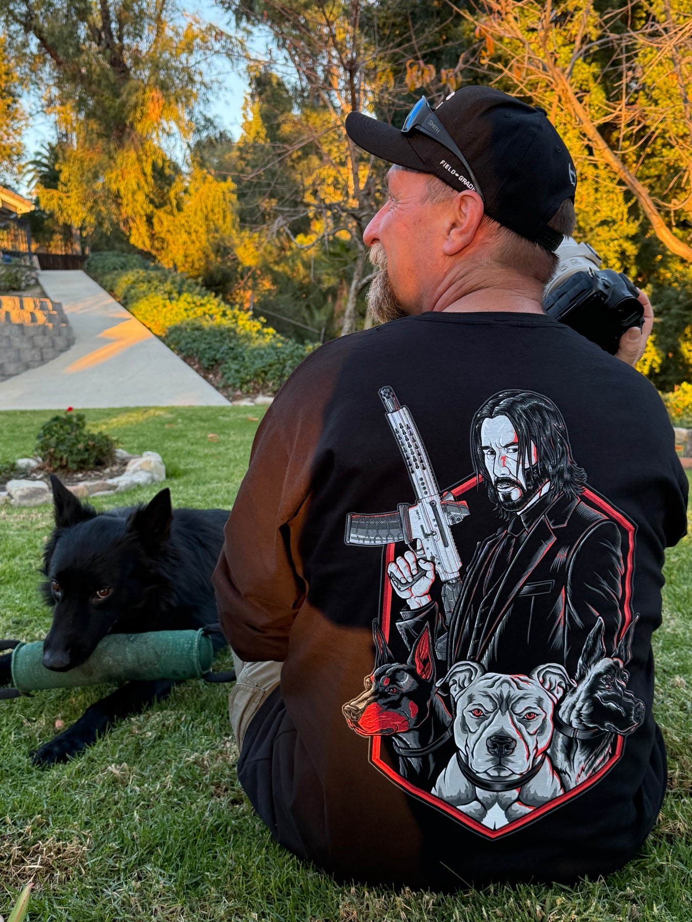 A tribute to relentless loyalty and controlled chaos.This Wick-inspired design reflects preparation, loyalty, and the mindset of staying steady under pressure. Apparel you can wear on & off the training field. This design features a Doberman, APBT, & Belgian Malinois.