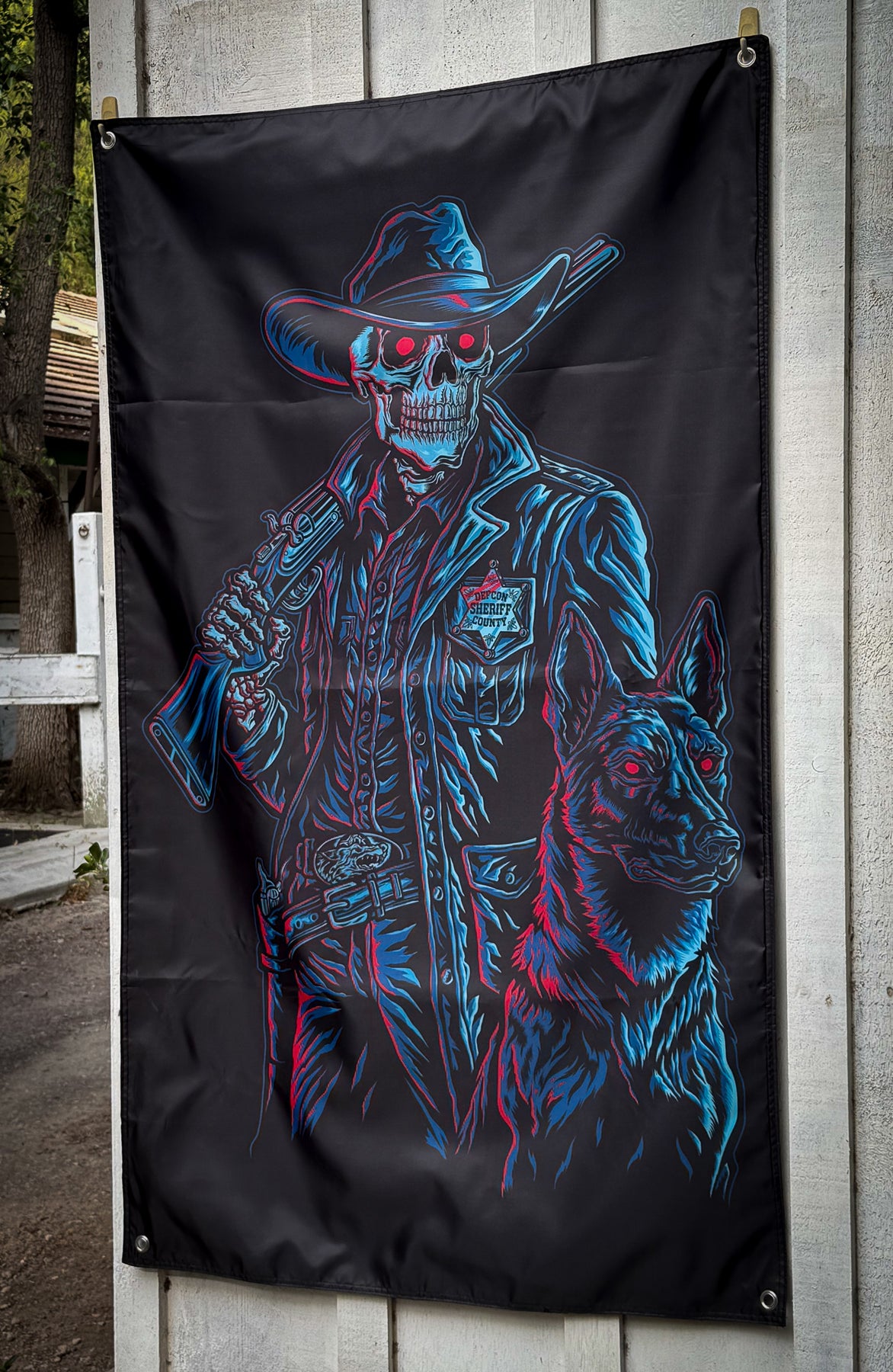 Our "Defcon Canine" Double-Sided flag features two of our favorite designs. K9 Sheriff is on one side and Salem Witch is featured on the opposite side. These flags also make for awesome gifts to the fellow dog handler.